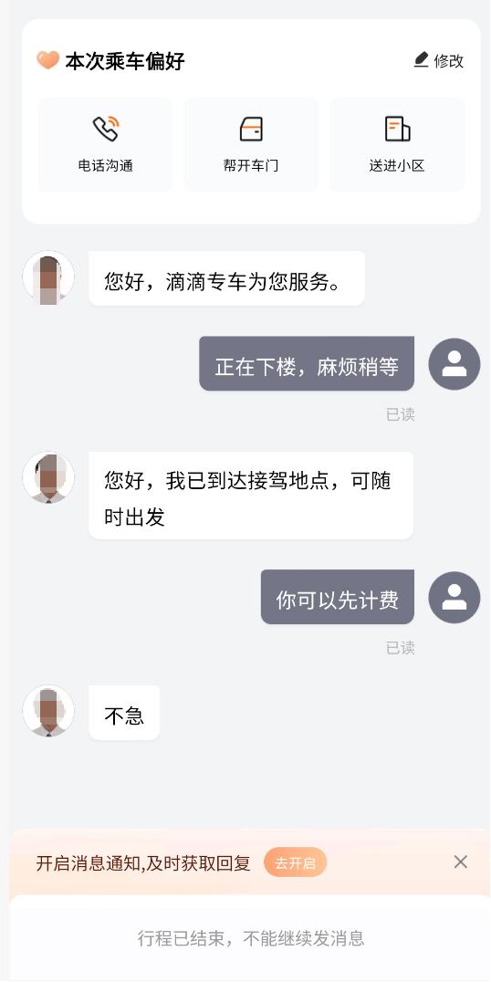 所以给司机发了消息